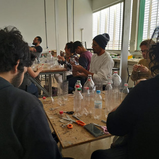 Foram feitas algumas partes dos bonecos, braços e maõs, através de uma vídeo conferência com o artista Catin Nardi, e também discutidas as ideias para o espetáculo que ocorrerá no desenrolar do projeto.